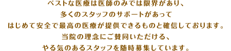 職種 正看護師 医療事務 勤務形態 常勤 パート 勤務開始可能日 月 日 お名前(漢字) お名前(ひらがな) 電話番号・携帯番号 - - メールアドレス ※受信可能なメールアドレスをご入力ください。 メールアドレス(確認用) ※確認のためもう一度メールアドレスをご入力ください。 その他お問合せ 応募理由や自己アピール、質問事項をご記入ください。 フォームによる個人情報取り扱いについて スタッフ募集業務に必要な、氏名・メールアドレスなどの個人情報の入力を必須とさせていただいております。 ご提供いただいた個人情報は、当院のスタッフ募集業務にのみ使用し、その他の目的には一切使用いたしません。 また、個人情報を当院から第三者に提供することも一切いたしません。 個人情報取り扱いについての同意 ご同意いただける場合は、「同意する」にチェックし、「送信」ボタンを押してください。応募フォームご送信後、診療時間内にTEL: 06-4708-7156までご連絡ください。